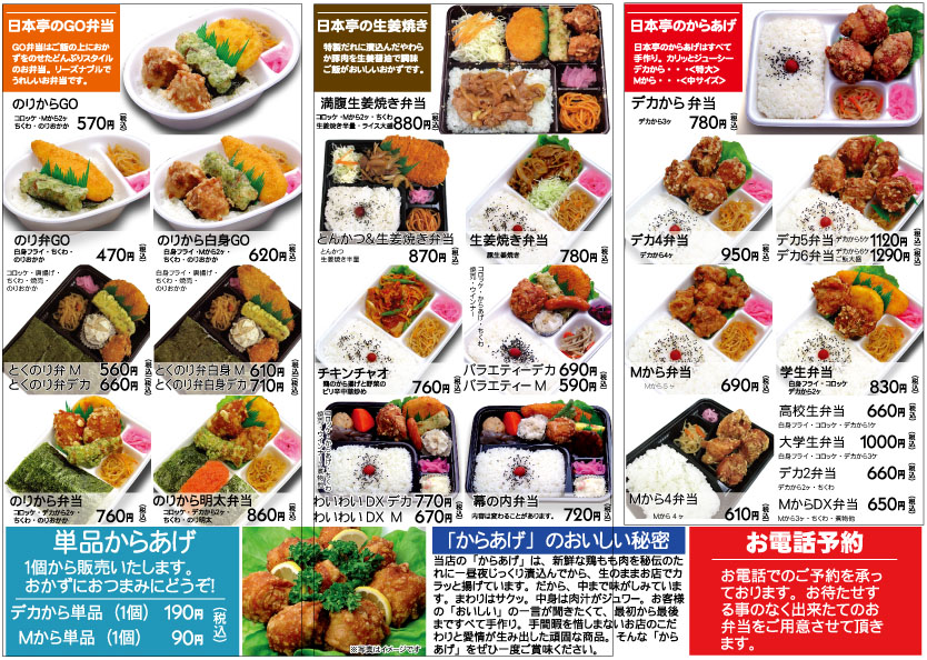(当ページのメニューはゆいの杜店のお持ち帰りメニューです) TEL:028-678-6688