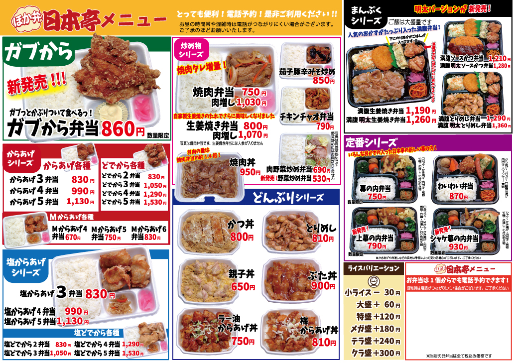 ご利用の店舗へお電話で予約頂ければ、お待たせすることなく出来たてのお弁当をご用意できます。是非ご利用ください。→店舗案内のページはこちら