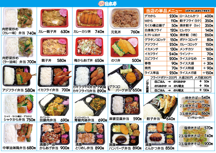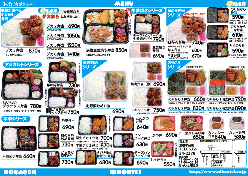 当ページは豊橋牟呂店のお持ち帰りメニューです。他の店舗を検索する→