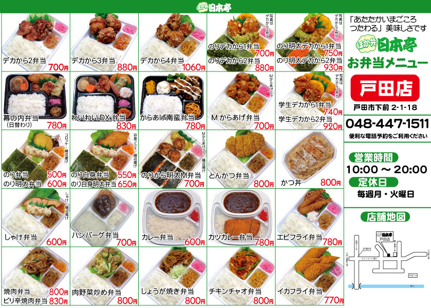 当ページは戸田店のお持ち帰りメニューです。他の店舗を検索する→