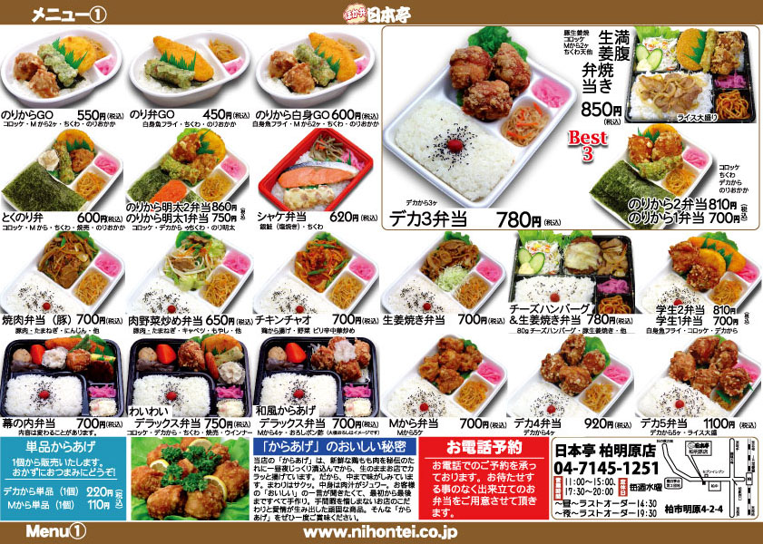 (当ページのメニューは柏明原店のお持ち帰りメニューです) TEL:04-7145-1251