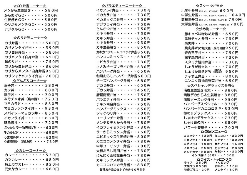 ご利用の店舗へお電話で予約頂ければ、お待たせすることなく出来たてのお弁当をご用意できます。是非ご利用ください。 TEL:04-7145-1251 柏明原店
